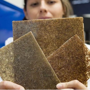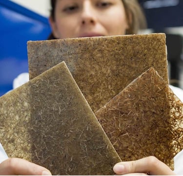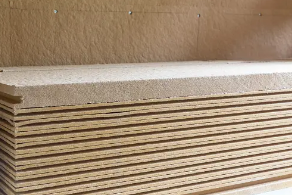 O tronco triturado, combinado com resinas, resulta em chapas estilo MDF, conferindo isolamento térmico, acústico e de umidade para divisões de ambientes.